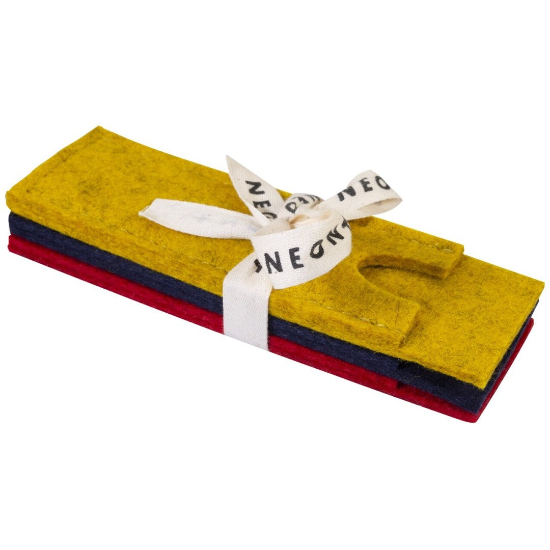 Divine Design yellow, blue and red felt single pen pouch. 3 pouches.