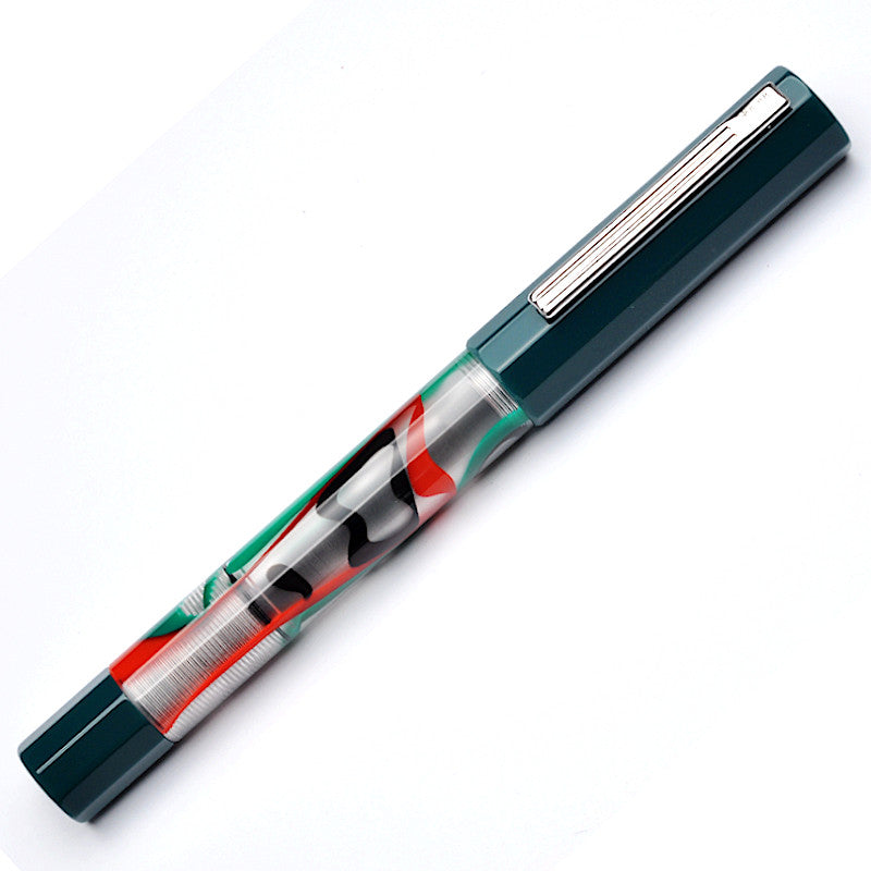 The new Opus 88 Flow fountain pen features solid resin colored cap and a translucent, acrylic body with playful colored swirls.