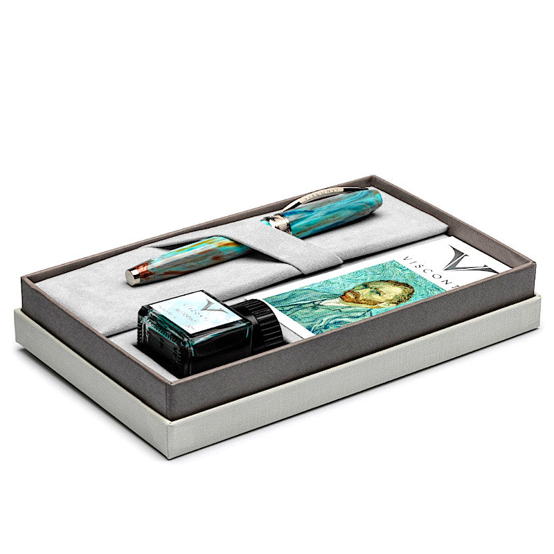 (VG10) The Visconti fountain pen has a special stainless steel nib Van Gogh engraving and uses standard international cartridges or a converter.