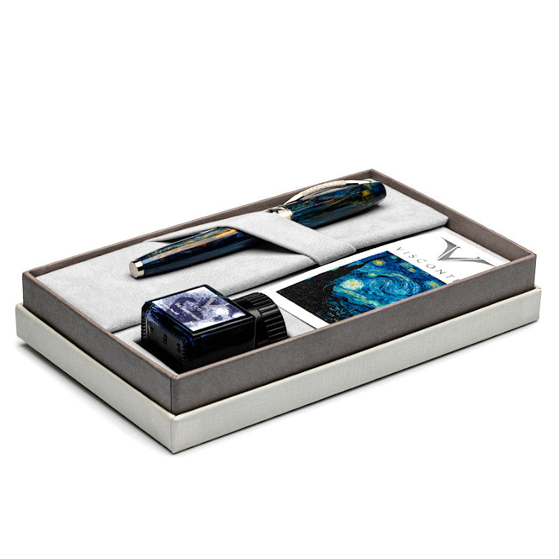 (VG10) The Visconti fountain pen has a special stainless steel nib Van Gogh engraving and uses standard international cartridges or a converter.